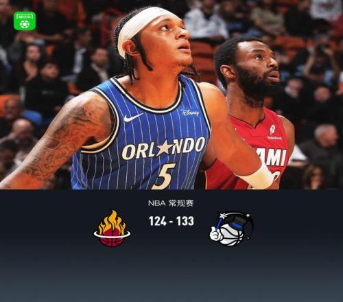 第四节热火诺曼-鲍威尔拿下9分,魔术贝恩拿下10分,最终热火124-133不敌魔术